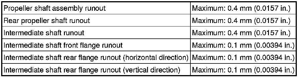 SPECIFICATIONS: DRIVE SHAFT / PROPELLER SHAFT: SERVICE DATA