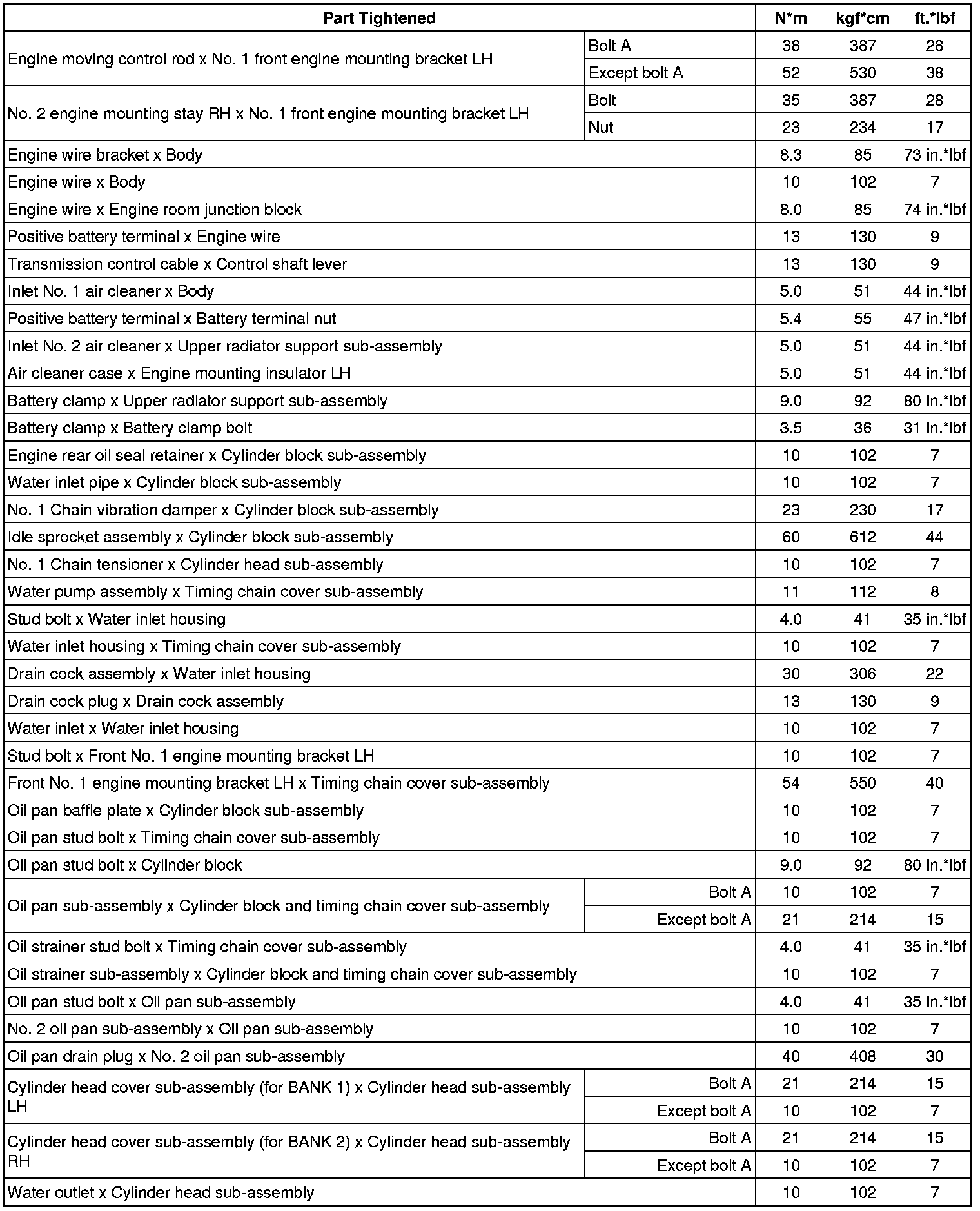 SPECIFICATIONS: 2GR-FE ENGINE MECHANICAL: TORQUE SPECIFICATIONS