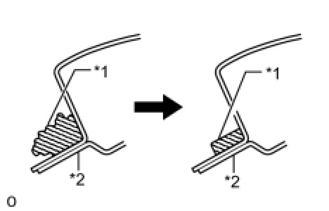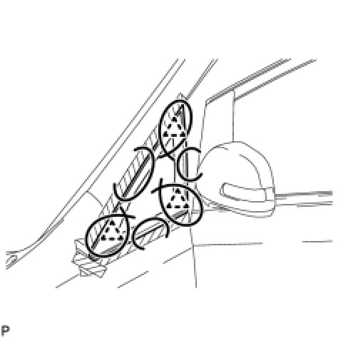 (1) Using a knife, cut away excess adhesive on the contact surfaces of the vehicle body as shown in the illustration.
