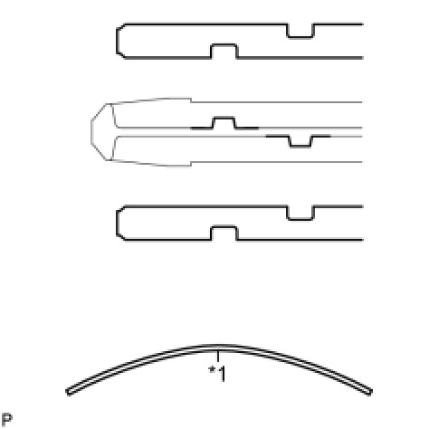 (b) Install the wiper rubber and the 2 wiper rubber backing plates to the front wiper blade with the tip of the rubber (curved end) facing the axis of the wiper arm.