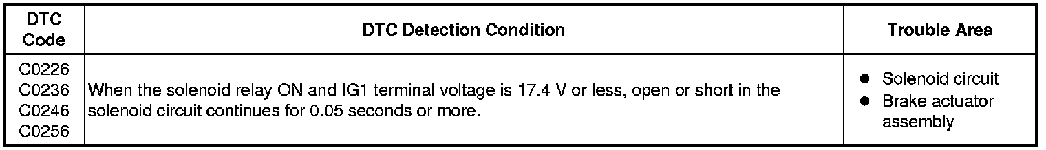 BRAKE CONTROL: ANTI-LOCK BRAKE SYSTEM (for Hatchback): C0226,C0236,C0246,C0256: SFR Solenoid Circuit