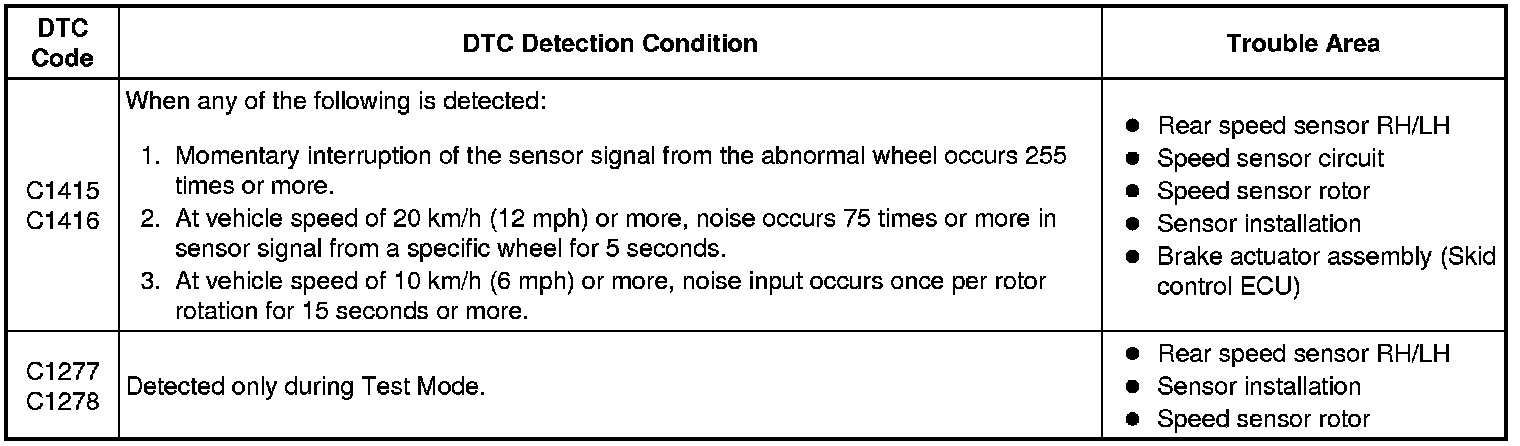 * DTCs C1415 and C1277 are for the rear speed sensor RH.