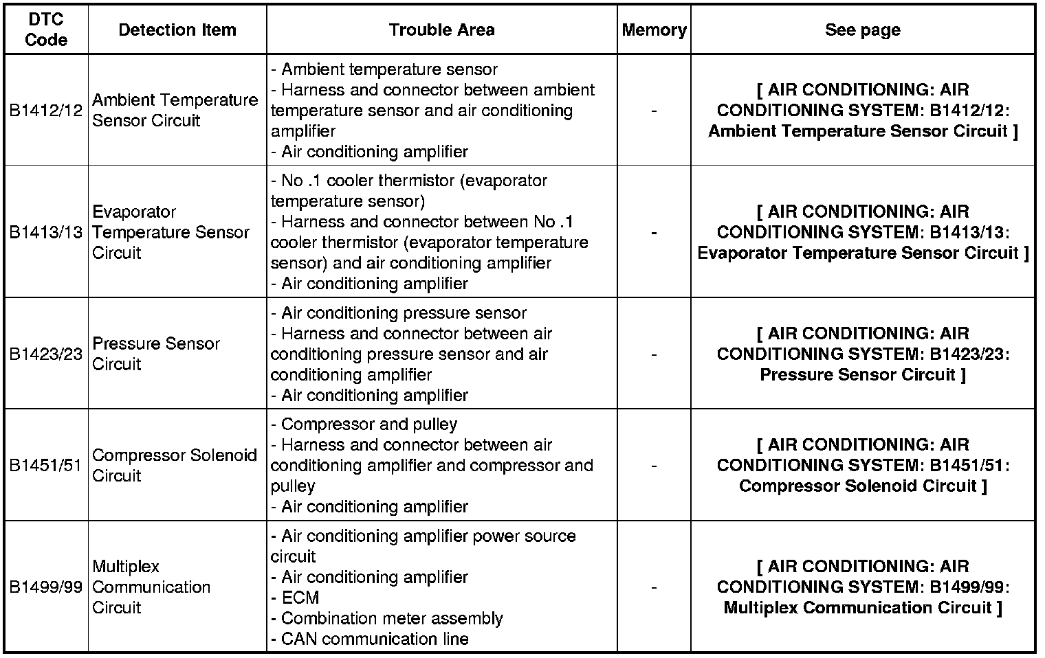 AIR CONDITIONING: AIR CONDITIONING SYSTEM: DIAGNOSTIC TROUBLE CODE CHART