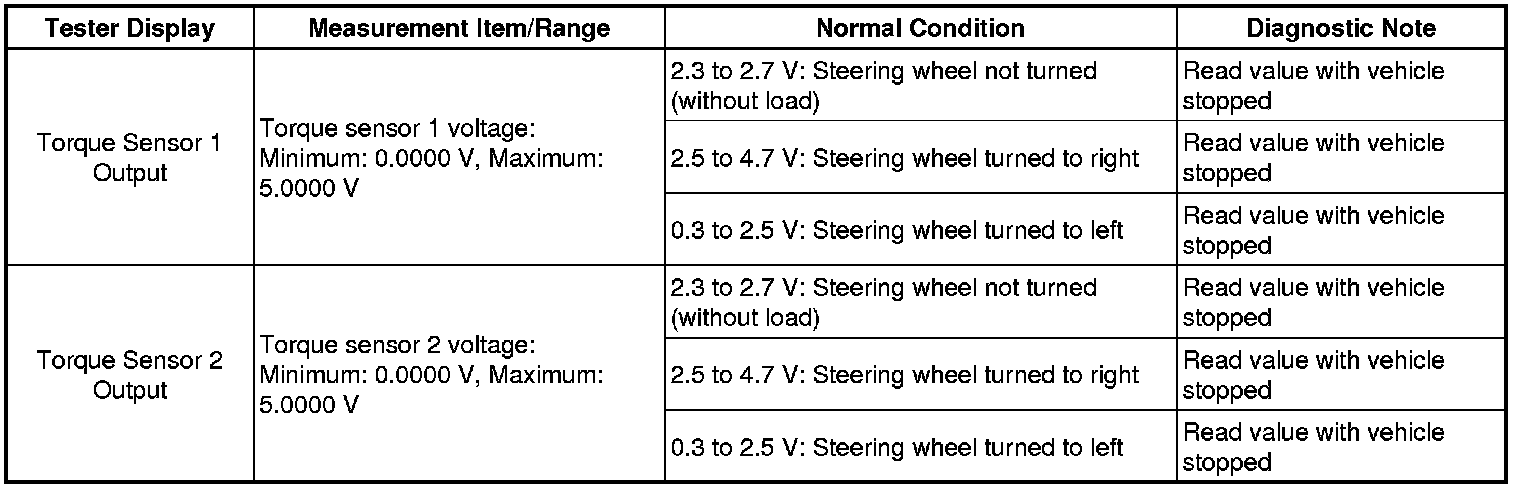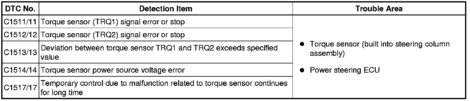 POWER STEERING: POWER STEERING SYSTEM: C1511/11-C1514/14,C1517/17: Torque Sensor 1 Malfunction