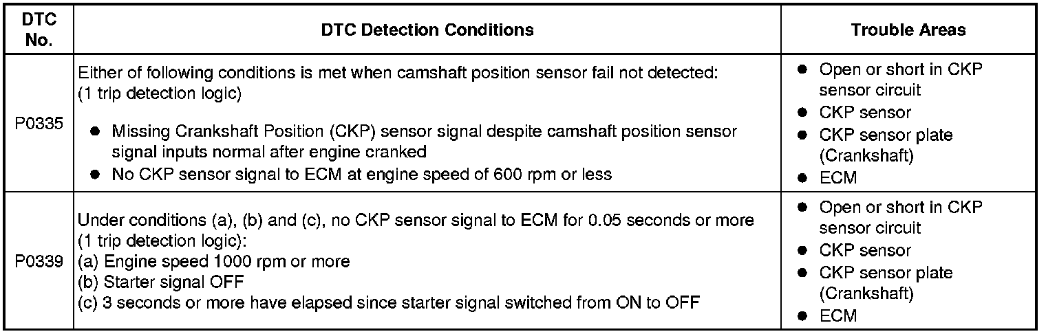 1NZ-FE ENGINE CONTROL SYSTEM: SFI SYSTEM: P0335,P0339: Crankshaft Position Sensor "A" Circuit
