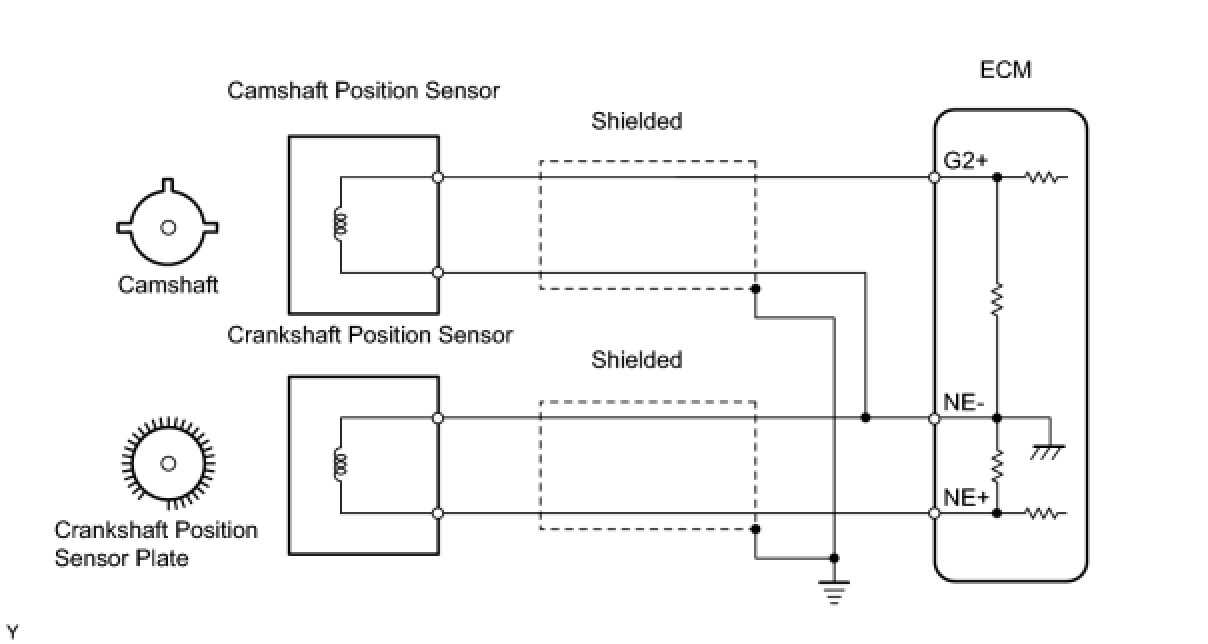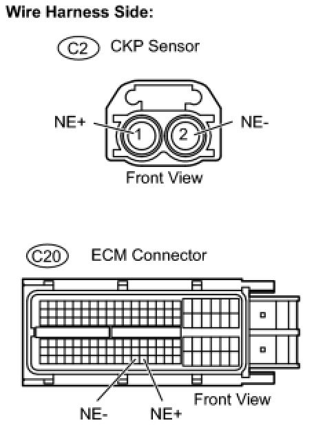 - G2+ stands for the Camshaft Position (CMP) sensor signal, and NE+ stands for the CKP sensor signal.