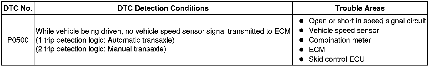 1NZ-FE ENGINE CONTROL SYSTEM: SFI SYSTEM: P0500: Vehicle Speed Sensor "A"