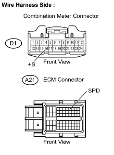 The ECM assumes that the vehicle is being driven, when a high engine load or fuel cut with the accelerator pedal released continues for 5 seconds or more. If there is no speed signal from the combination meter, despite this condition being met, the ECM interprets this as a malfunction in the speed signal circuit. The ECM then illuminates the MIL and sets the DTC.