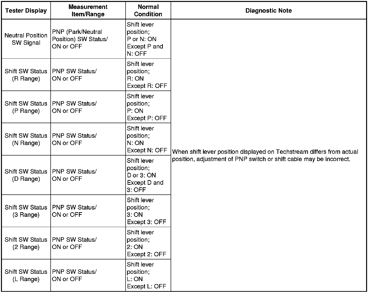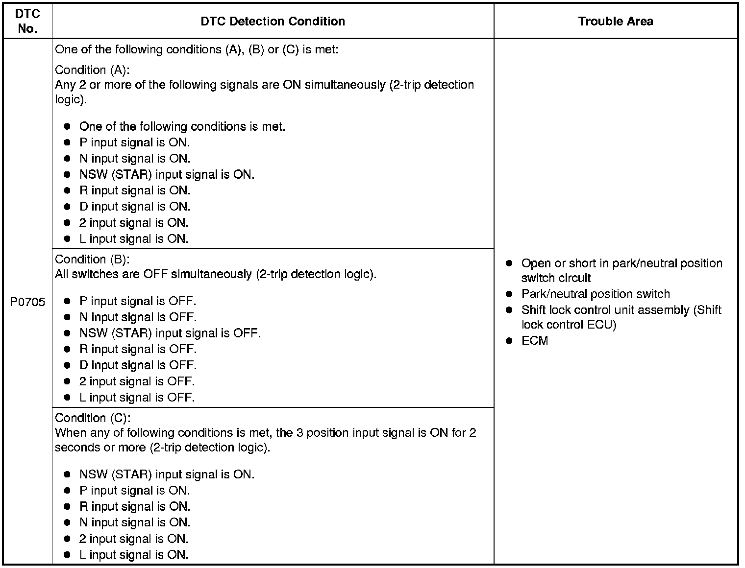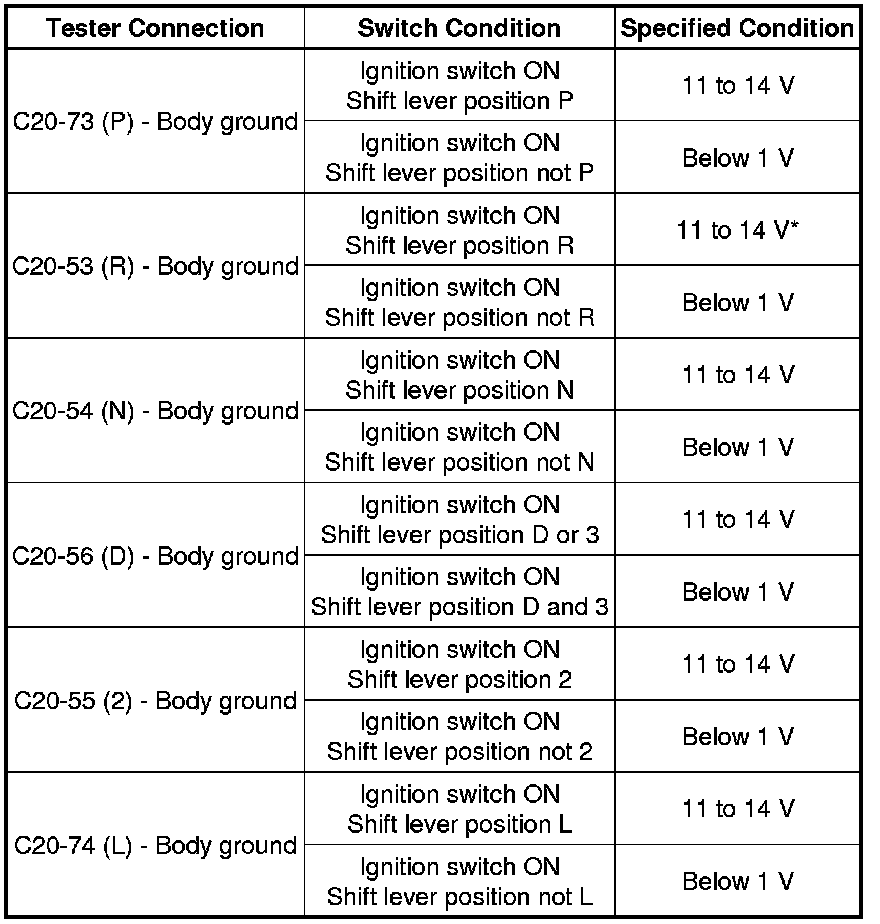 U340E AUTOMATIC TRANSAXLE: AUTOMATIC TRANSAXLE SYSTEM: P0705: Transmission Range Sensor Circuit Malfunction (PRNDL Input)