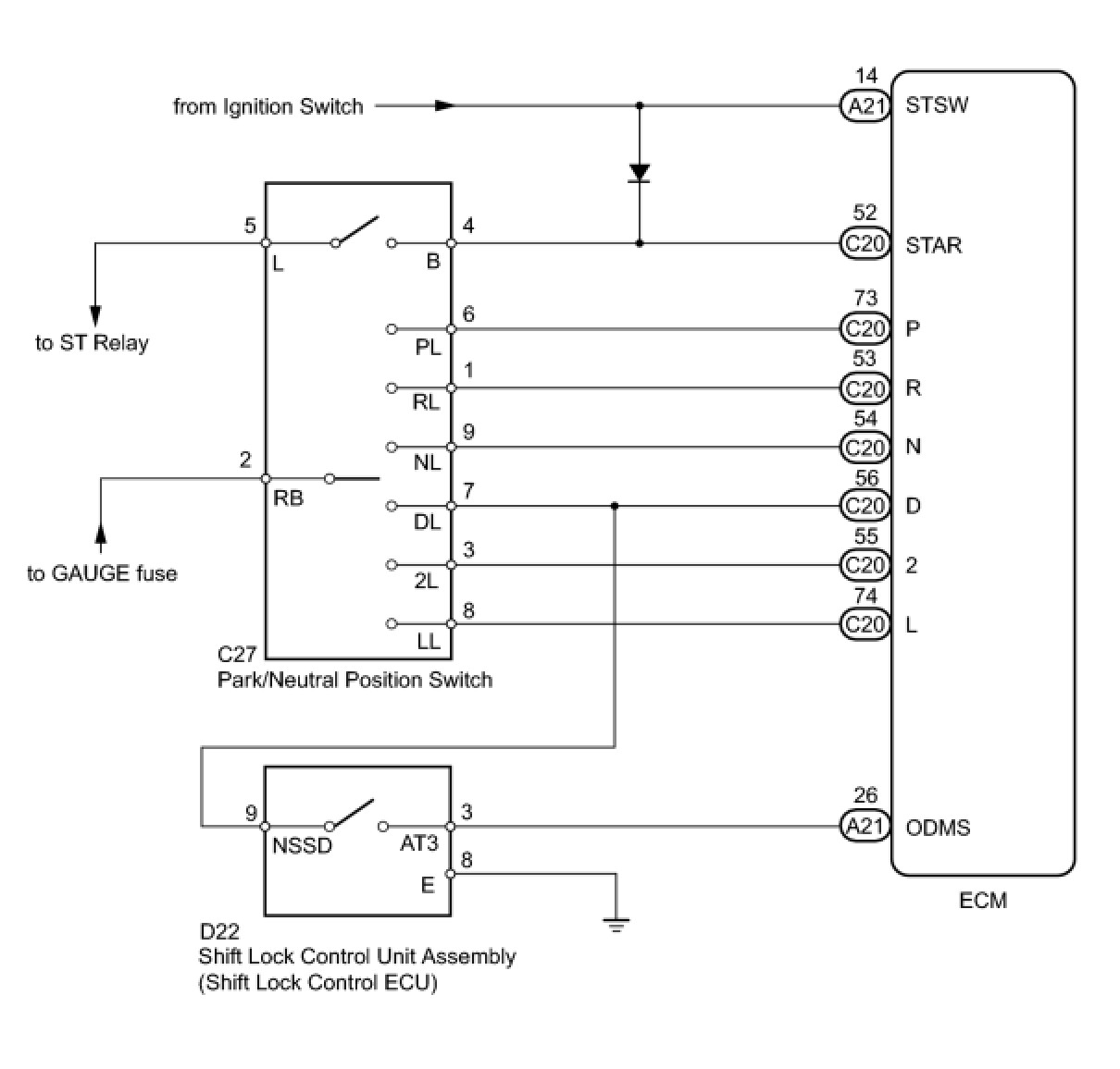 5. CHECK HARNESS AND CONNECTOR (PARK/NEUTRAL POSITION SWITCH - SHIFT LOCK CONTROL ECU)