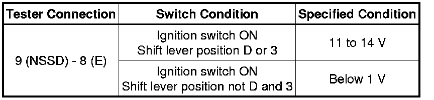 2. CHECK HARNESS AND CONNECTOR (NSW TERMINAL VOLTAGE)