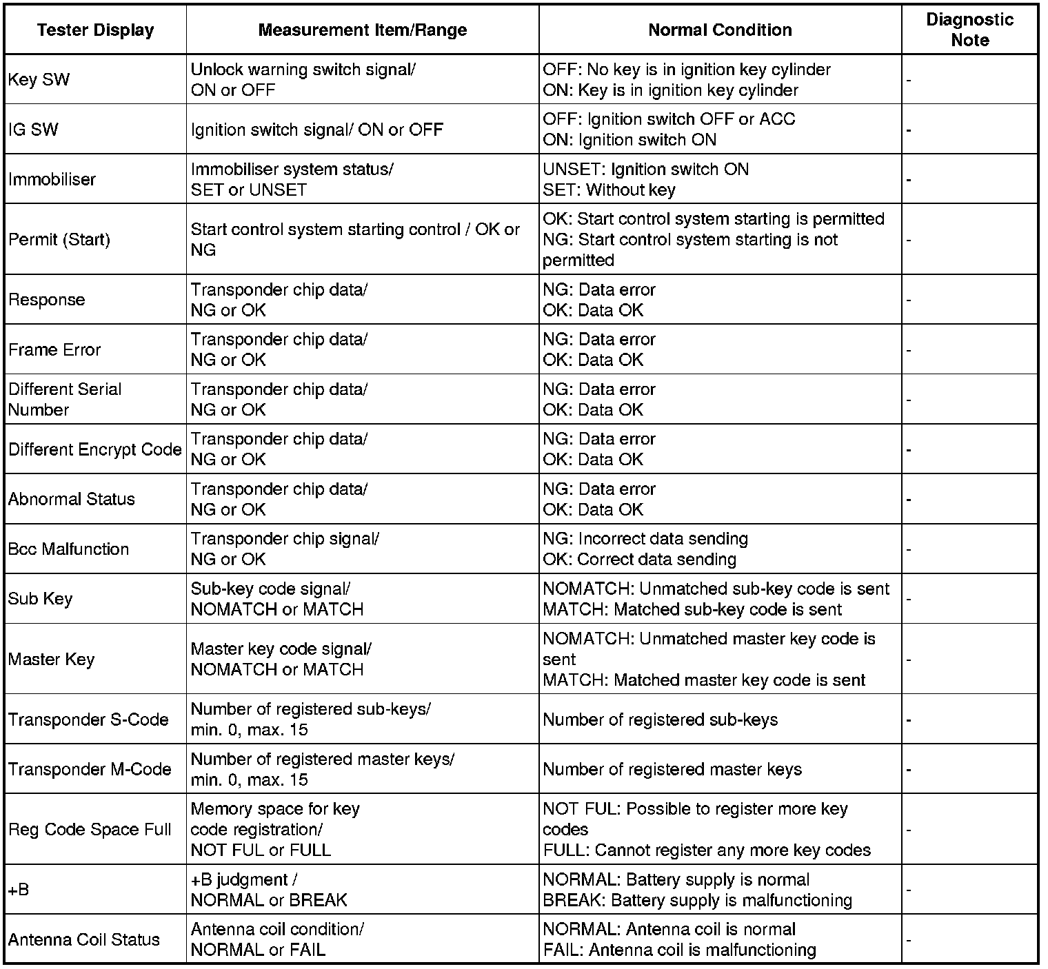 ENGINE IMMOBILISER: ENGINE IMMOBILISER SYSTEM: DATA LIST / ACTIVE TEST
