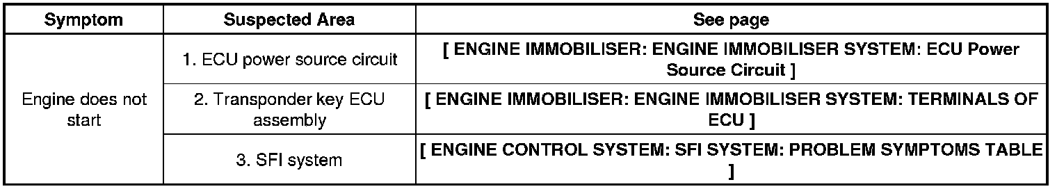 ENGINE IMMOBILISER: ENGINE IMMOBILISER SYSTEM: PROBLEM SYMPTOMS TABLE