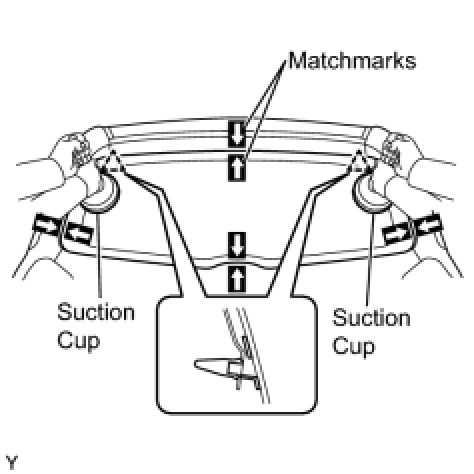 (1) Using suction cups, position the back door glass so that the matchmarks are aligned. Press it in gently along the rim.