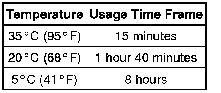 After cutting off the tip, use all adhesive within the time indicated in the table below.