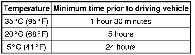 Do not to drive the vehicle within the time indicated in the table below.