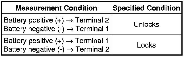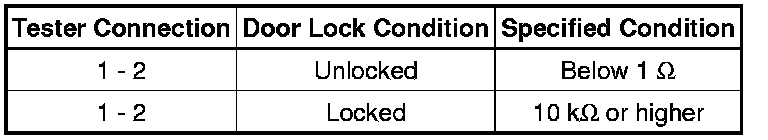 (1) If the result is not as specified, replace the back door lock actuator.