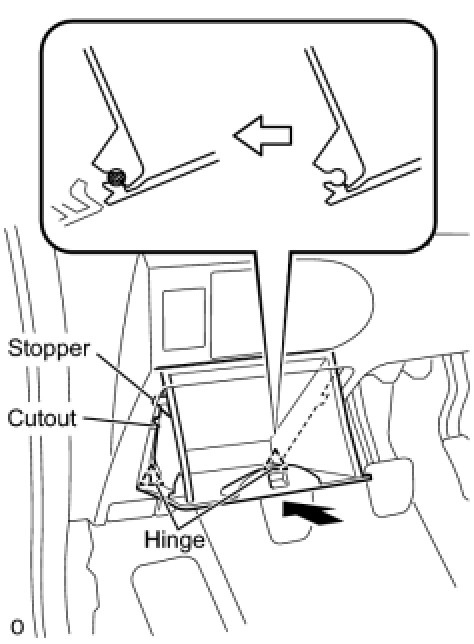 (a) Insert the stopper of the instrument panel box from the cutout of the instrument panel lower.