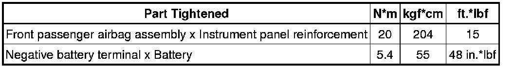 SERVICE SPECIFICATIONS: INSTRUMENT PANEL: TORQUE SPECIFICATIONS