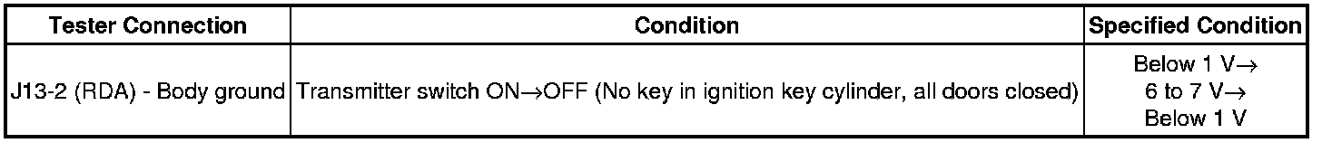 (a) When a new or normally functioning door lock control transmitter switch for the same type vehicle is held down, check that an unmatching recognition code is output.