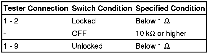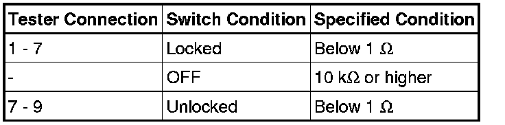 DOOR LOCK: DOOR CONTROL SWITCH (for Hatchback Driver Door Side): INSPECTION