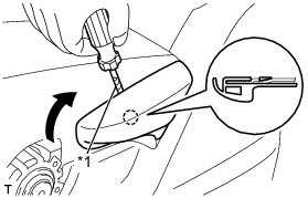 (a) Using a screwdriver with its tip wrapped in protective tape, disengage the 3 claws and remove the vertical adjuster cover.