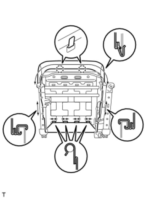 (a) Engage the 7 hooks and the 2 claws and install the front seat cushion.