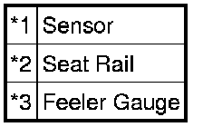 (2) Install a 1 mm (0.04 in.) feeler gauge between the seat rail and seat position sensor, as shown in the illustration.
