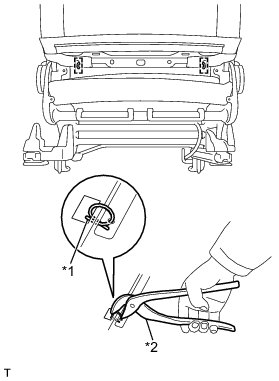 (1) Engage the 2 claws and install the front seat cushion lower shield.