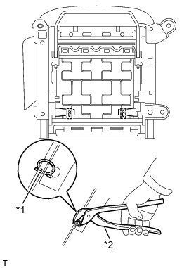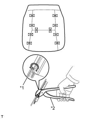 (a) Using hog ring pliers, install the front seat cushion cover with 10 new hog rings.
