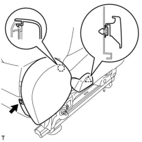 (a) Engage the 2 claws and the clip and install the front seat cushion outer shield.