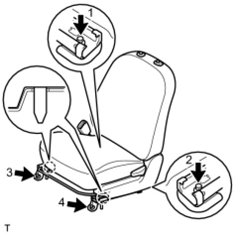 (a) Insert the 2 location pins through the 2 body holes, place the front seat in the most forward position and make sure that the inner and outer seat tracks are locked securely.