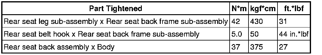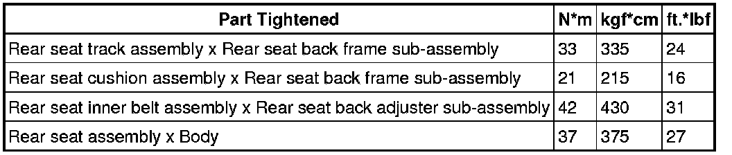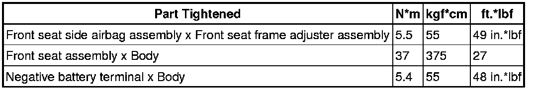 SERVICE SPECIFICATIONS: SEAT: TORQUE SPECIFICATIONSFRONT SEAT ASSEMBLY::