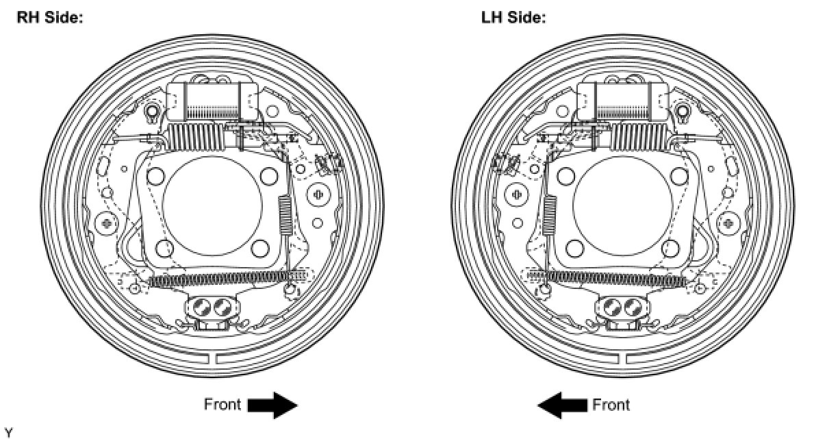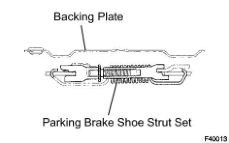 (e) Install the parking brake shoe strut set as shown in the illustration.