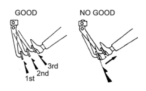 * If the pedal can be depressed to the floor on the 1st time, but cannot be depressed as far on the 2nd or 3rd times, the booster is airtight. If not, inspect the vacuum check valve.