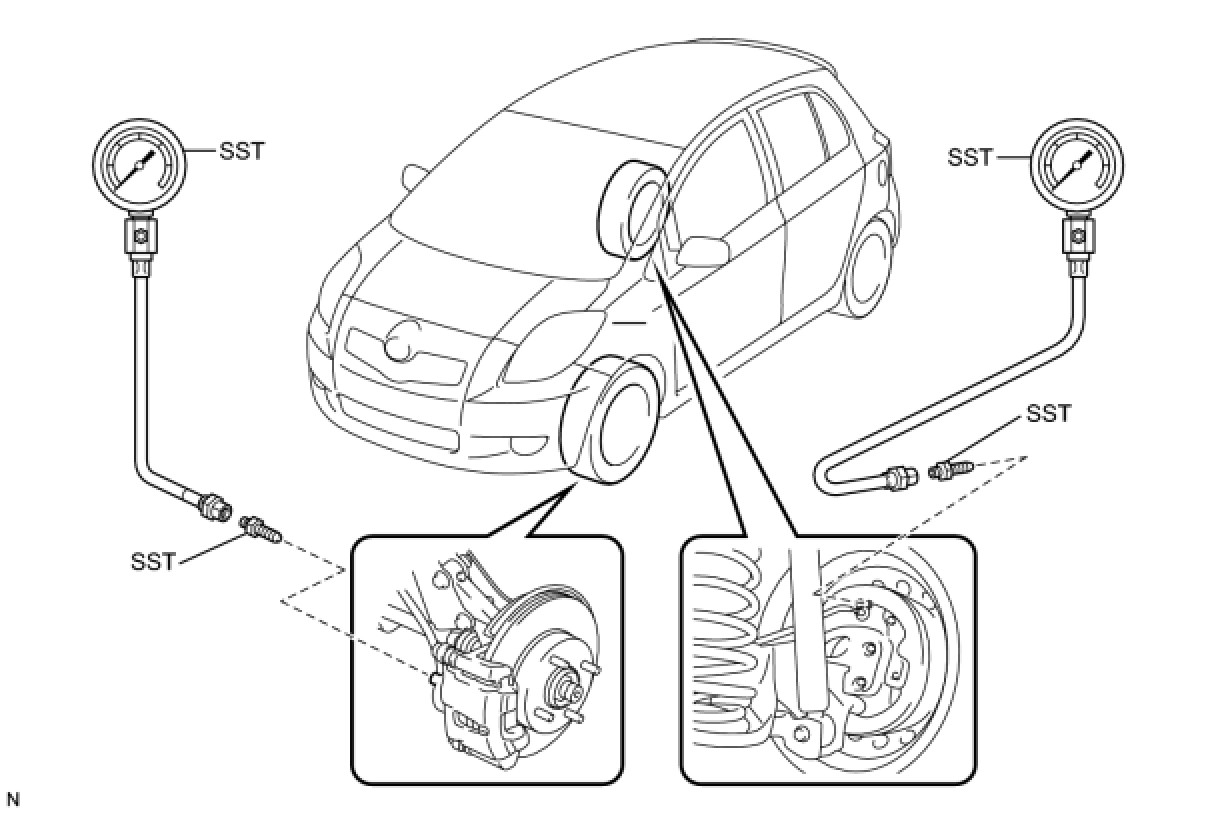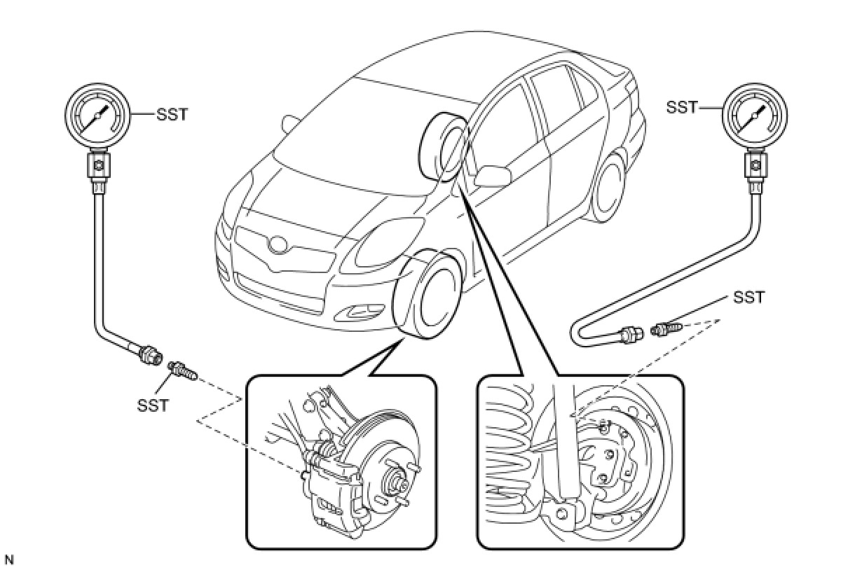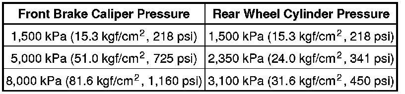 (2) Raise the front brake caliper pressure and inspect the rear wheel cylinder pressure.