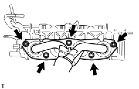 (b) Remove the 3 bolts and 2 nuts and remove the intake manifold.