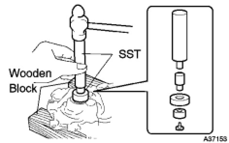 (a) Using SST and a hammer, tap in a new oil seal until its surface is flush with the timing chain cover edge.