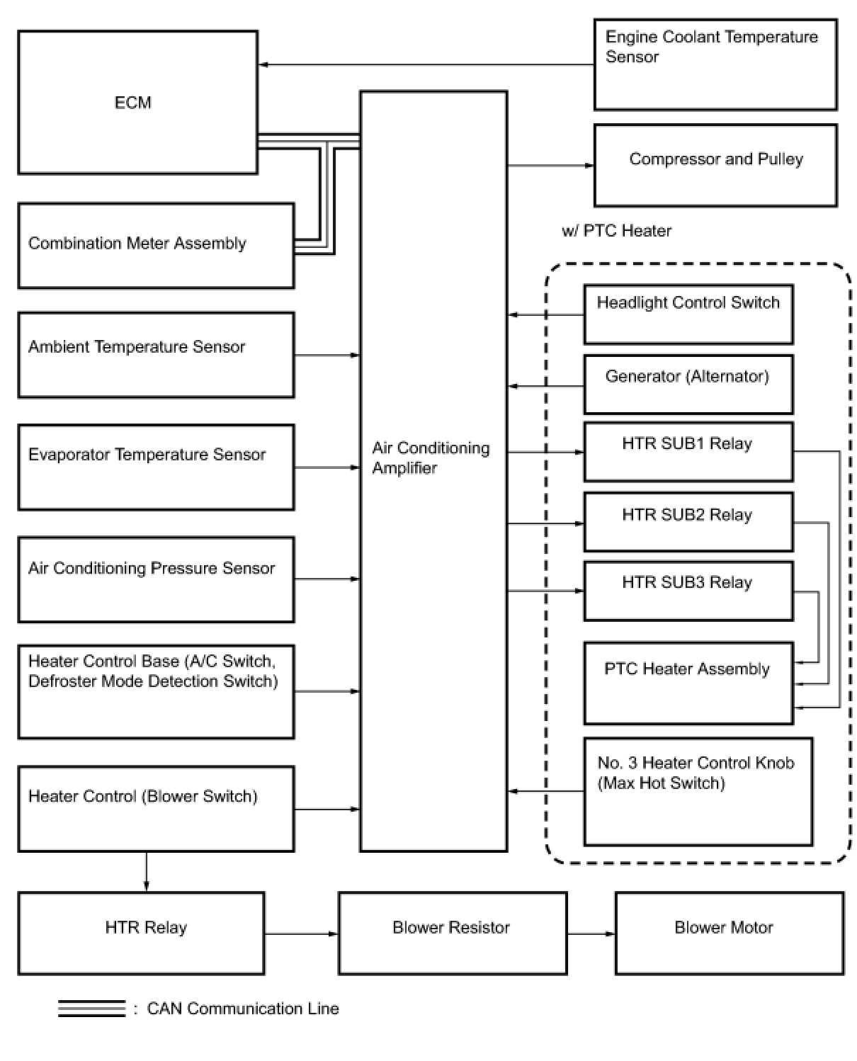 The air conditioning amplifier controls the operation of parts, such as the air conditioning compressor, automatically in accordance with the operating conditions of the air conditioning system.
