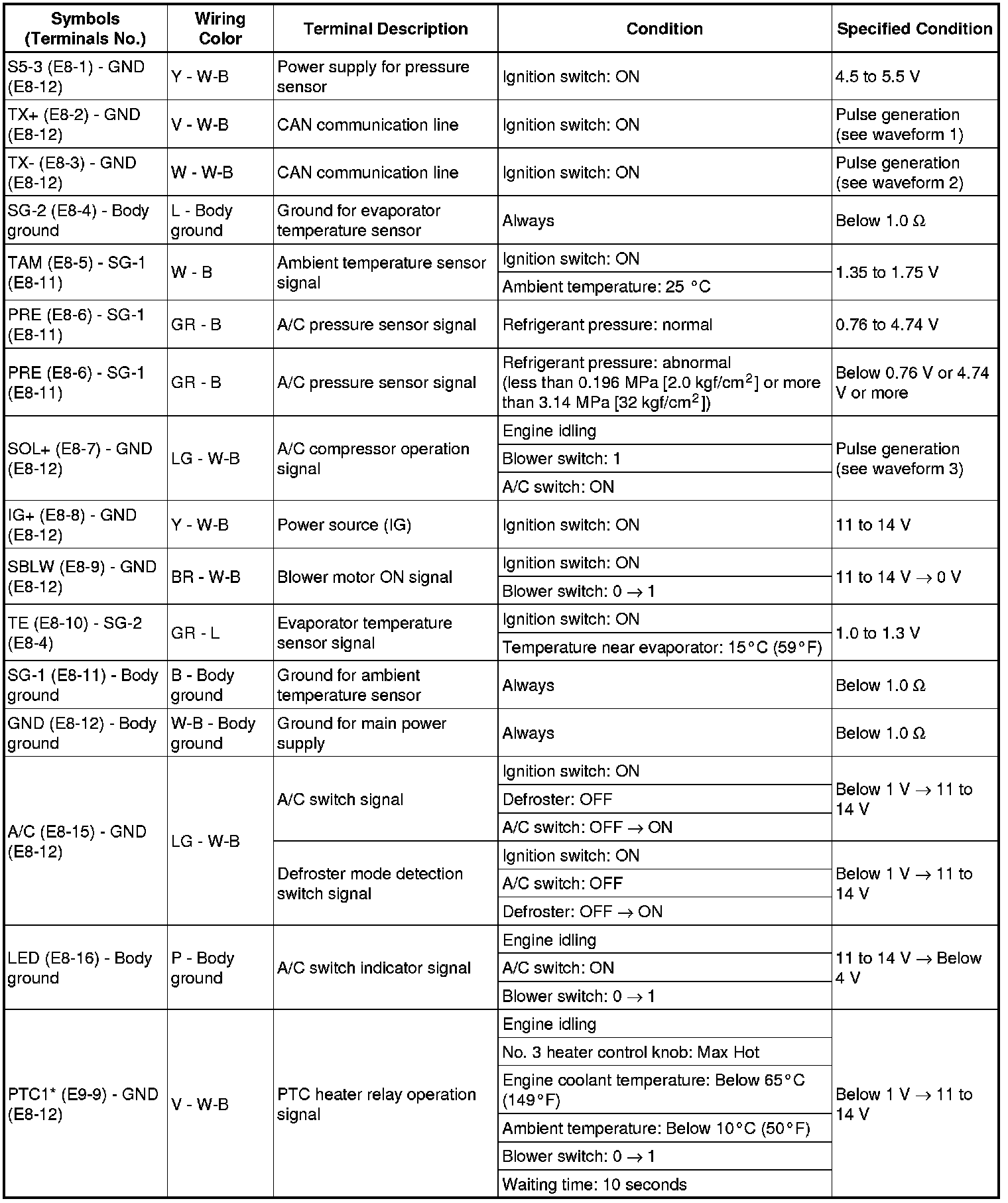 AIR CONDITIONING: AIR CONDITIONING SYSTEM: TERMINALS OF ECU