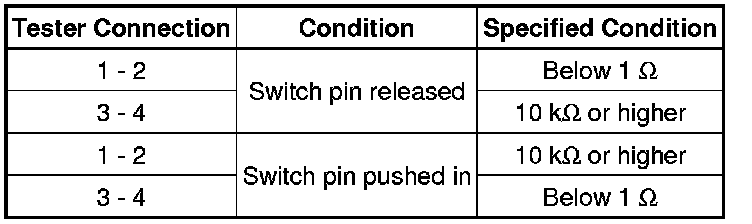 (1) If the result is not as specified, replace the stop light switch.