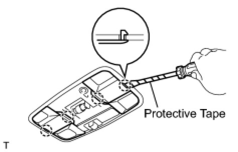 (a) Using a screwdriver with its tip wrapped in protective tape, disengage the 4 claws and remove the room light lens.