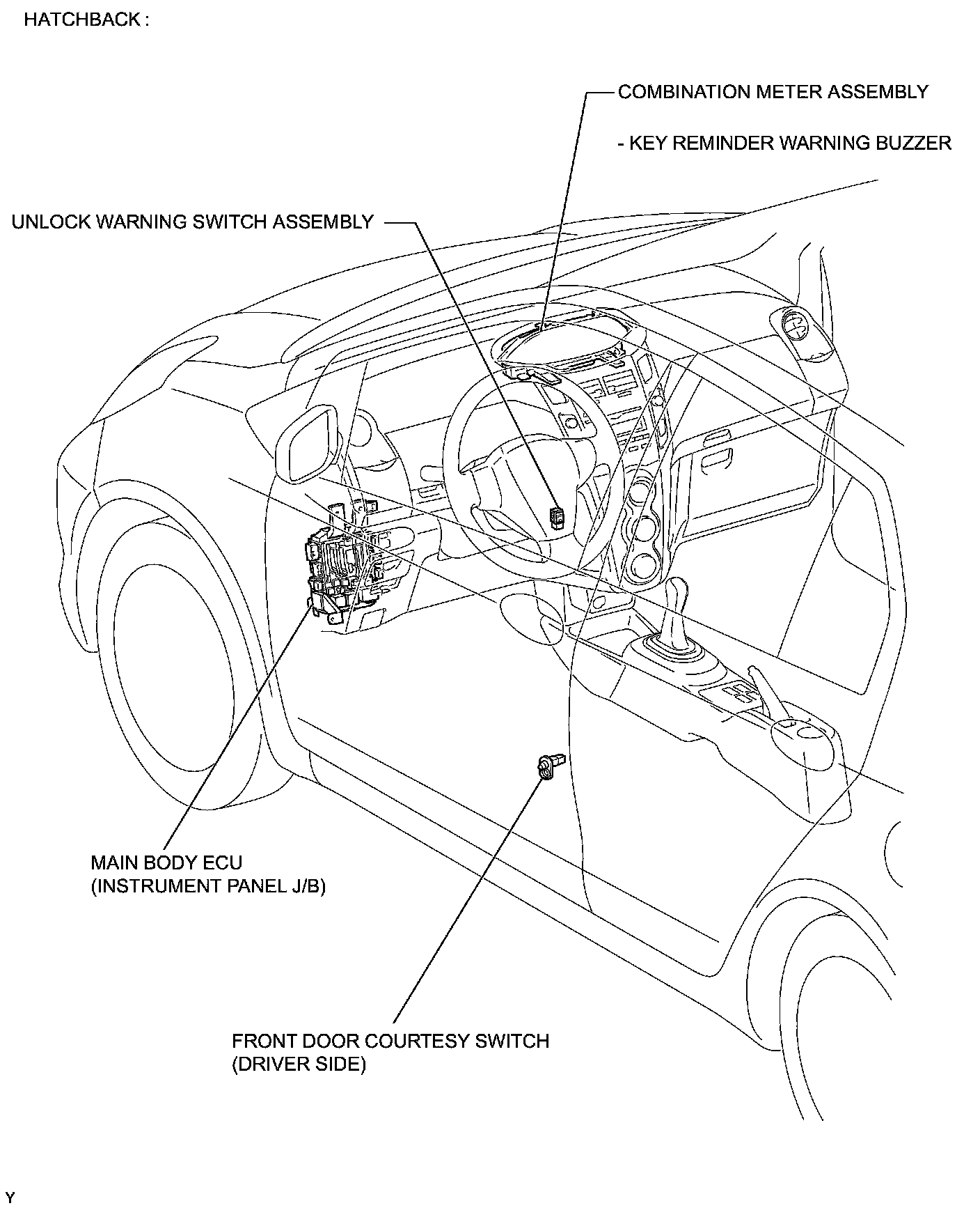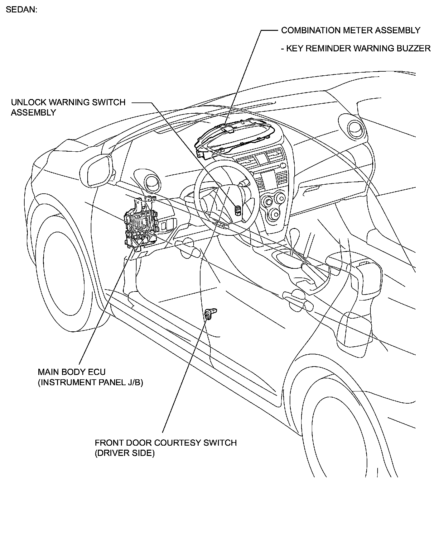 DOOR LOCK: KEY REMINDER WARNING SYSTEM: PARTS LOCATION