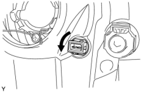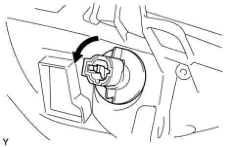 (a) Turn the front turn signal light socket and bulb, in the direction indicated by the arrow in the illustration, to remove them.