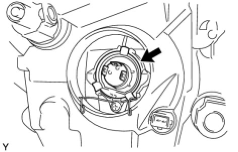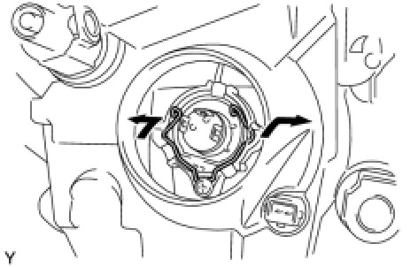 (b) Turn the parking light bulb socket and bulb, in the direction indicated by the arrow in the illustration, to install them.