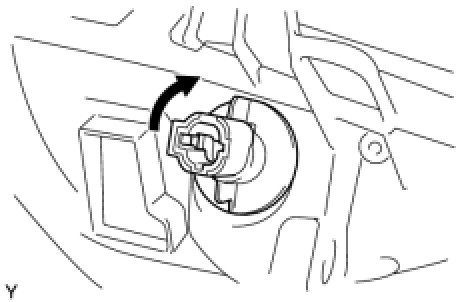 (b) Turn the front turn signal light bulb socket and bulb, in the direction indicated by the arrow in the illustration, to install them.