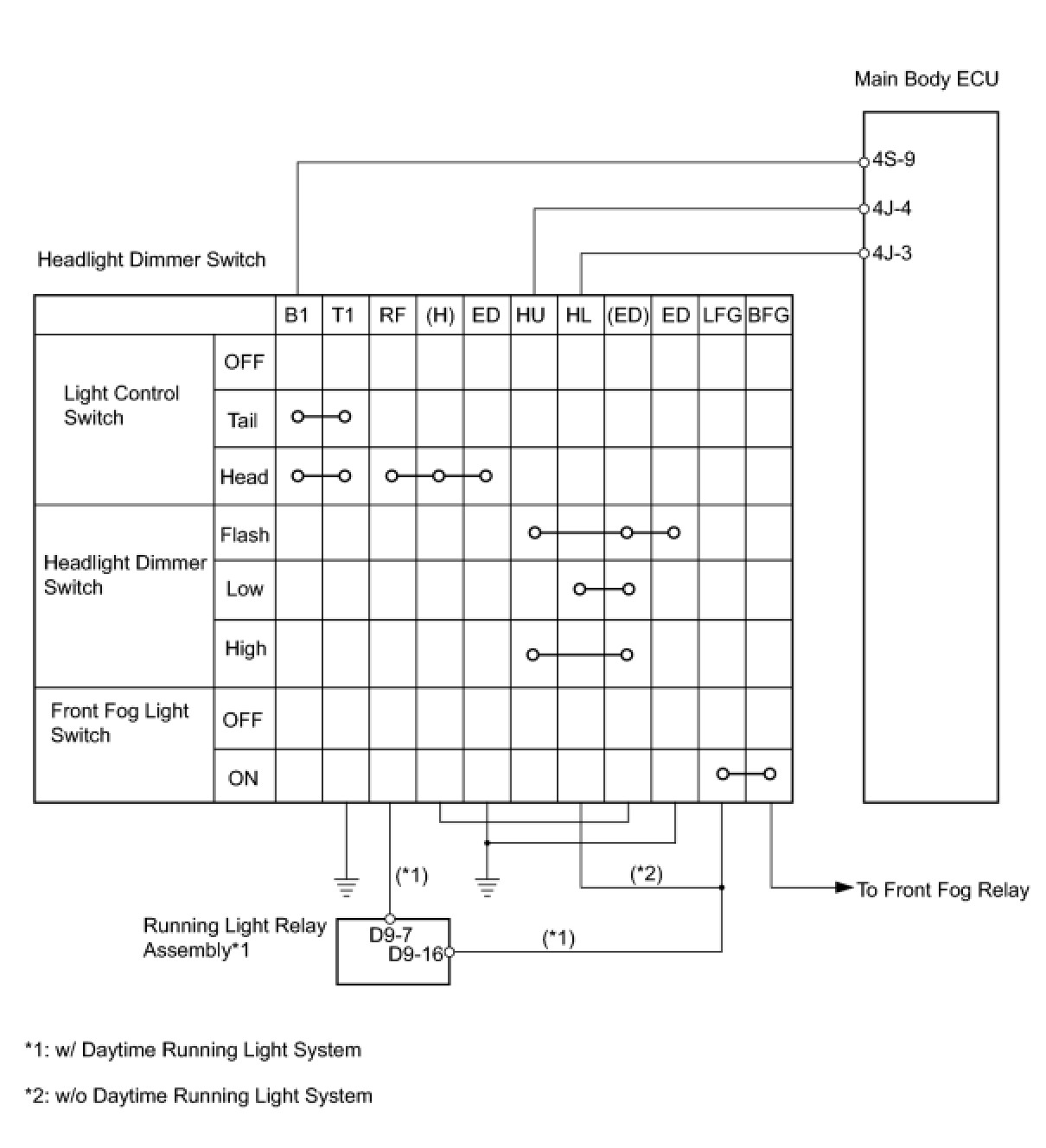1. CHECK HARNESS AND CONNECTOR (HEADLIGHT DIMMER SWITCH - MAIN BODY ECU, RUNNING LIGHT RELAY)