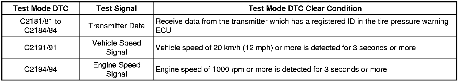 TIRE AND WHEEL: TIRE PRESSURE WARNING SYSTEM: TEST MODE PROCEDURE