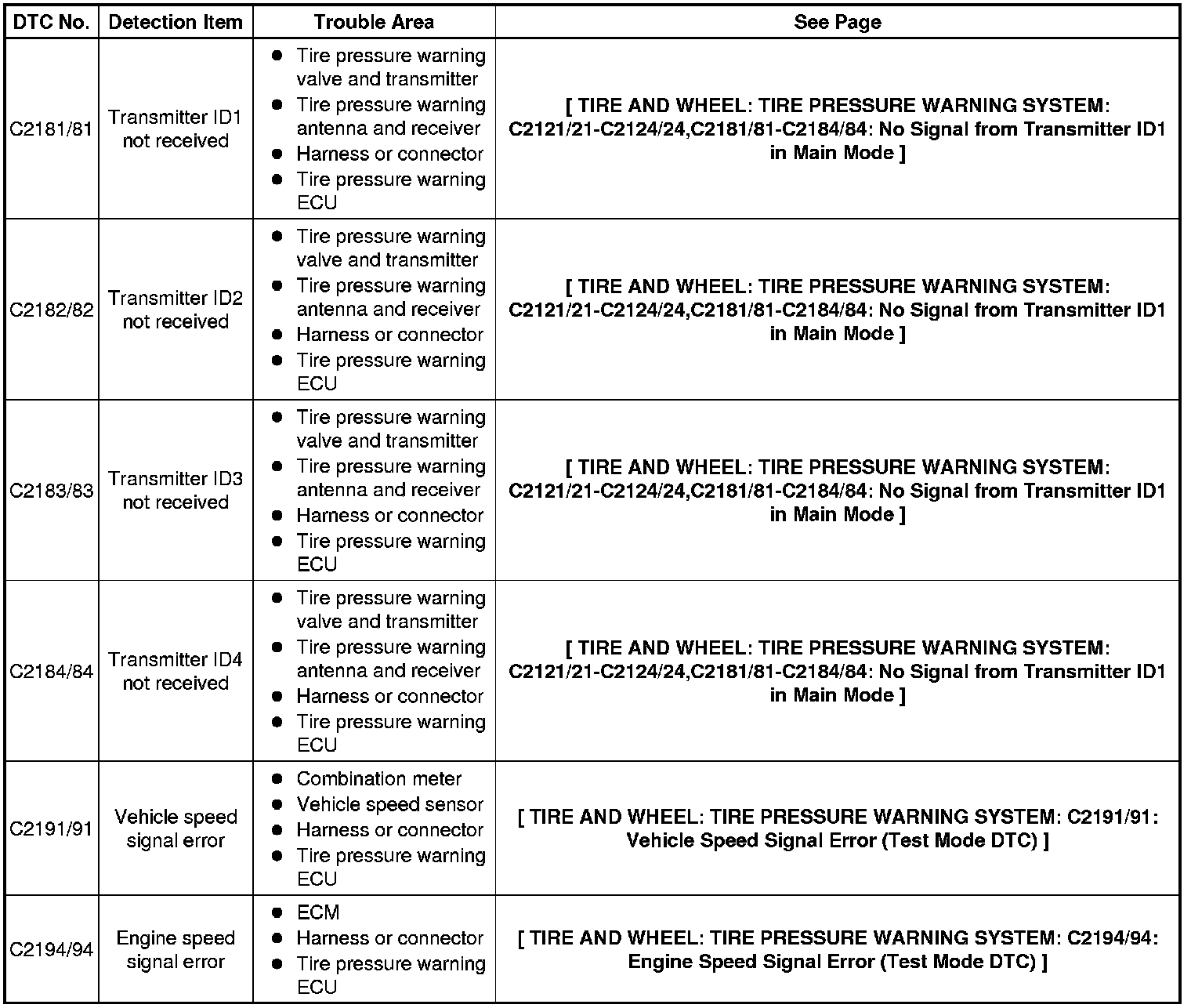 * When entering signal check mode, the tire pressure warning ECU sets all the signal check DTCs first.