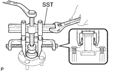 (c) Using SST, remove the hub bearing inner race from the axle hub.